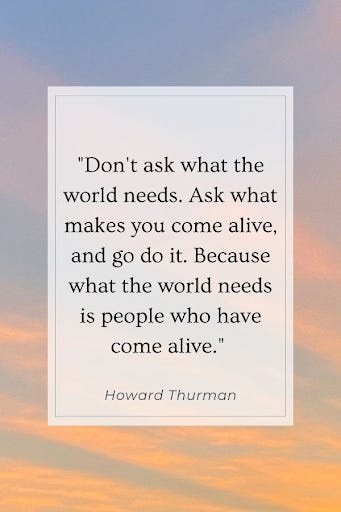 Once we become aware of what makes us feel alive, we gain agency to create more of those moments. Rather than waiting for “aliveness” to simply arrive, we can intentionally make room for it now!